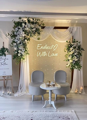 • Entrance & Pathway Décor: Grand welcome setups with arches, floral gates, lanterns and personalized creative elements.